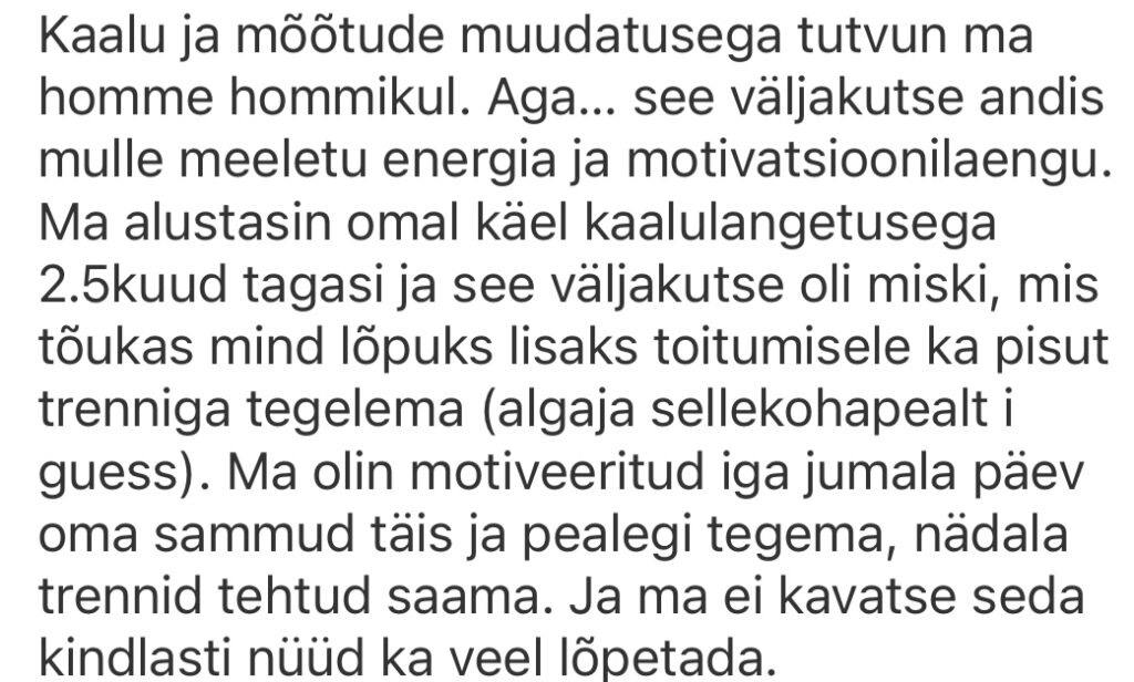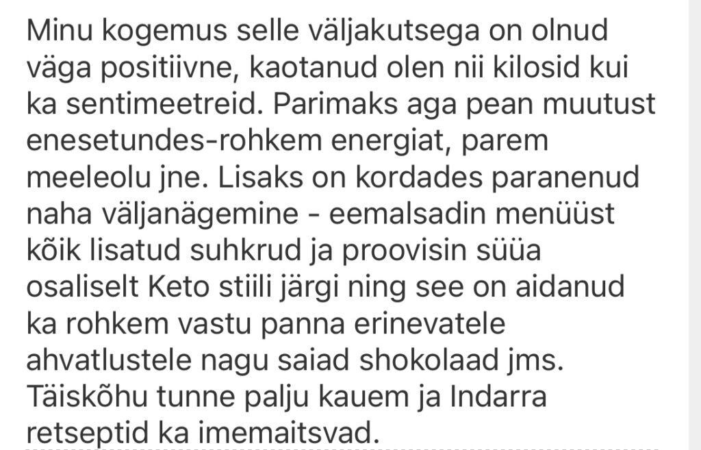 Saad väljakutse raames süüa minu tehtud retseptide järgi või panna ise menüü kokku MyFitnessPali abil. Saad teha keto- kui ka tavatoitumistiili harrastajana.